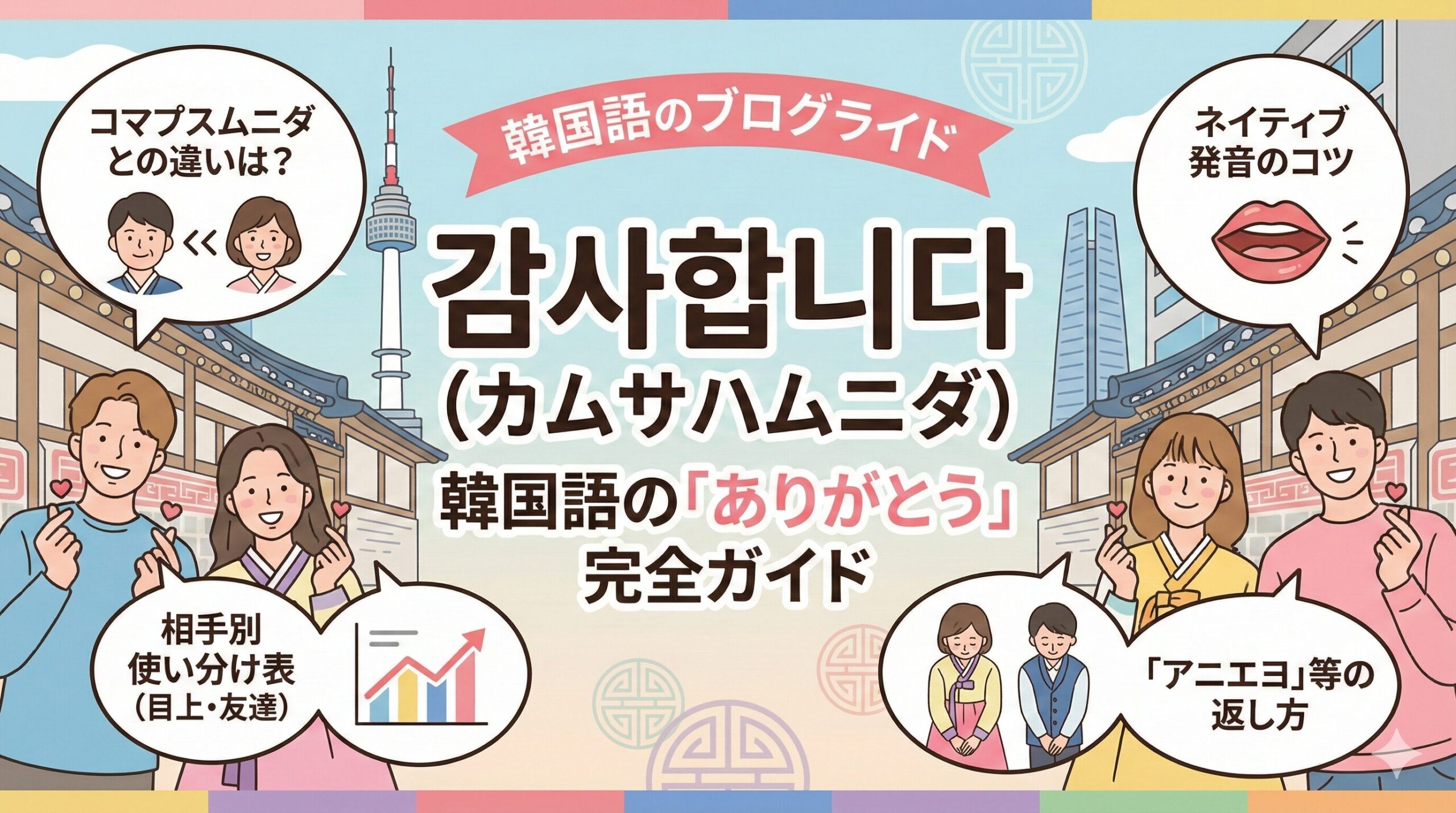 この記事では、韓国語初心者のために、「カムサハムニダ」の正しい意味と発音、そして相手に合わせた使い分けをわかりやすく解説します。